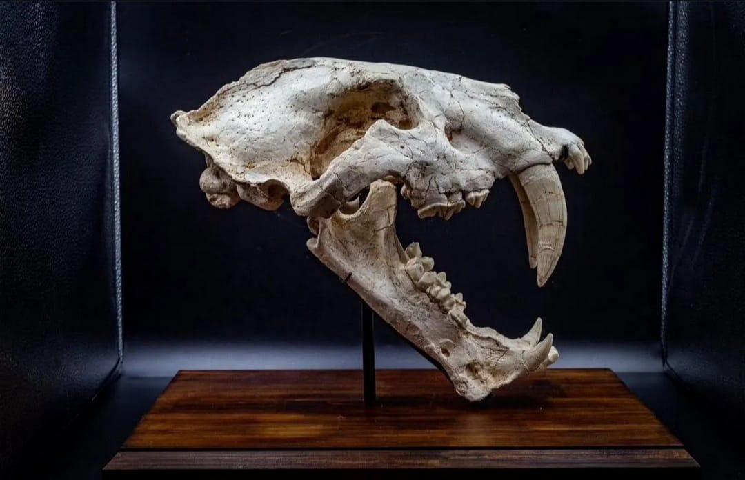 A genuine 7-million-year-old skull of the Saber-Toothed Tiger (Amphimachoidus) for your collections and favorite interiors! The skull of this deadly alpha predator serves as a beautiful reminder of our planet’s amazing past, tells of the dangers that awaited the first humans, and beautifully explores the theme of evolution. This exquisite and rare artifact from the mists of time can take pride of place in your collection of artifacts or make a wonderful gift for a passionate and knowledgeable person!